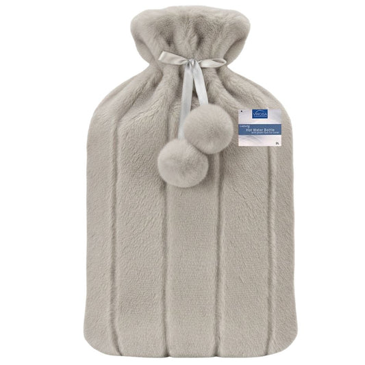 VIROSA Large 2L Hot Water Bottle with Soft Fluffy Cover – Pain Relief for Back, Neck, Legs & Cramps (Mink)