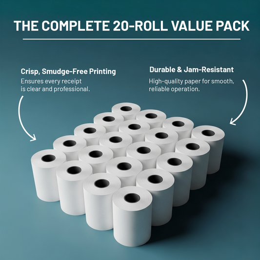 VIROSA Thermal Till Rolls, 57mm x 40mm, BPA-Free Receipt Paper, Red Warning Stripe, PDQ Payment Terminal Compatible – 20/50 Pack