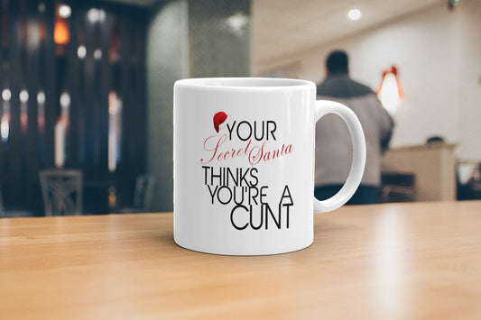 VIROSA Rude Secret Santa Mug – Your Secret Santa Thinks You’re a C*NT – Funny Office Gift for Coworkers, Friends, Him or Her – 11oz White Ceramic Coffee Cup – Sarcastic Xmas Present