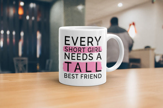 VIROSA Funny Best Friend Mug – Every Short Girl Needs a Tall Best Friend – Cute & Sarcastic Gift for Friends – Christmas, Birthday, Friendship Day – 11oz White Ceramic Coffee Cup