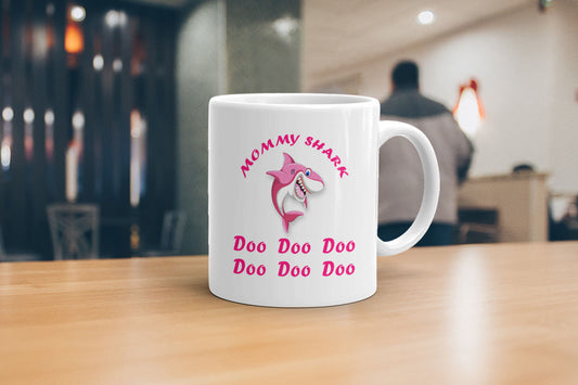 VIROSA Mummy Shark Mug – Doo Doo Doo – Funny Novelty Gift for Mum – Birthday, Christmas, Mother’s Day Coffee Cup – 11oz White Ceramic Mug