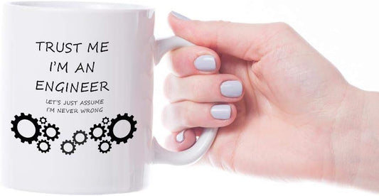 VIROSA Funny Engineer Mug – Trust Me I'm an Engineer, Let’s Just Assume I'm Never Wrong – Sarcastic Coffee Cup Gift – Christmas, Office, Graduation, Birthday – 11oz White Ceramic Mug
