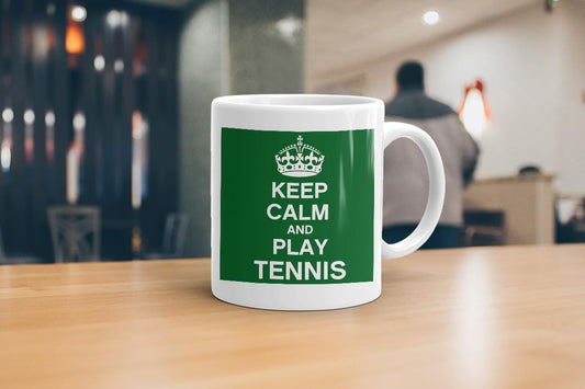 VIROSA Tennis Mug – Keep Calm and Play Tennis – Funny Gift for Tennis Players, Coaches, Fans – Birthday, Christmas or End-of-Season Present – 11oz White Ceramic Coffee Cup