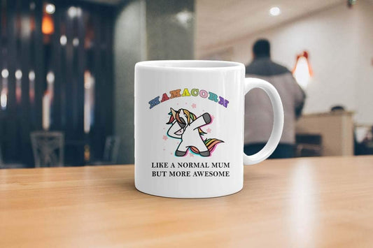 VIROSA Mamacorn Mug – Like a Normal Mum but More Awesome – Funny Gift for Mum from Daughter or Son – Mother’s Day, Birthday, Xmas Present – 11oz White Ceramic Coffee Cup