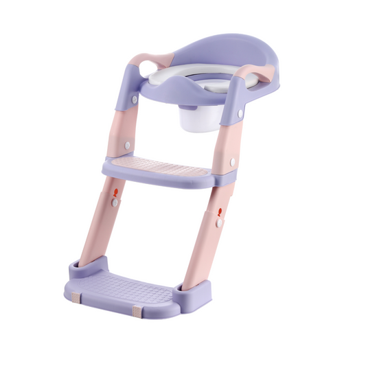 VIROSA 3-in-1 Toddler Toilet Seat with Step Stool – Adjustable Potty Training Chair for Boys & Girls (Grey / Pink & Purple)