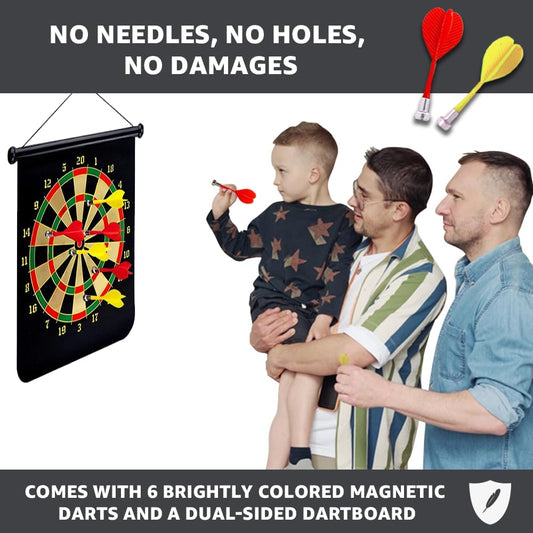 VIROSA Magnetic Safe Dartboard for Kids – 38cm/15" Hanging Roll-Up with 6 Darts | Double-Sided Indoor & Outdoor Game Set for Family Fun, Adults & Kids Gift