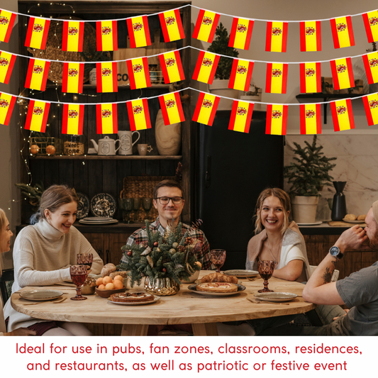 VIROSA Spain Flag Bunting – 10m / 33ft with 24 Flags – Durable Patriotic Decoration for Euro, World Cup, Festivals & Spanish National Celebrations