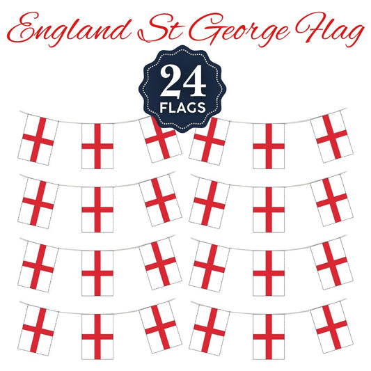VIROSA St George Cross Flag Bunting – 10m / 33ft England Banner with 24 Large Flags – Durable Patriotic Decoration for World Cup, Sports Events, Parties & National Celebrations