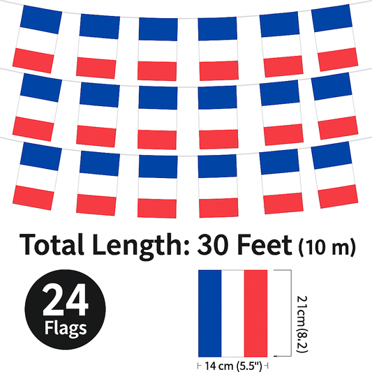 MEGA VALUE France Flag Bunting – 36ft (11m) Long with 36 Flags – French Tricolor Banner for Bastille Day, World Cup, Olympics, Parties & Outdoor Celebrations