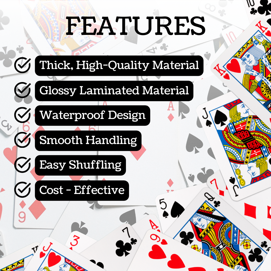 - Full Standard 52-Card Deck + Jokers: All your favourite games, now bigger.